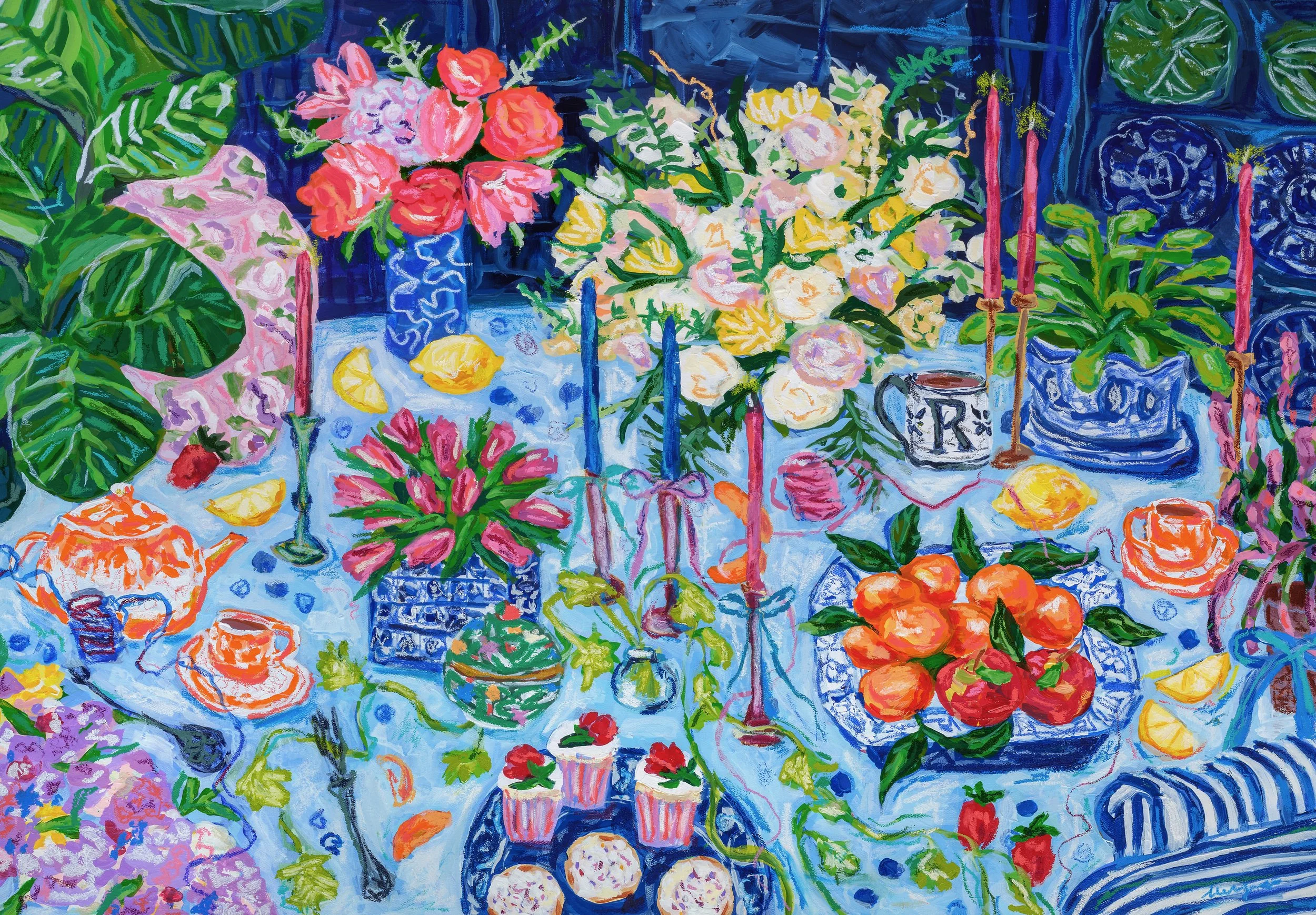 Thank you for your interest in commissioning a custom painting! My paintings are designed to celebrate you through my style of joyful crowded tablescapes. You can find everything you need to know about commissions on this page.